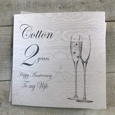 2nd COTTON Wedding Anniversary To my Wife Handmade Card Champagne Flutes by WHITE CARDS BD102 W
