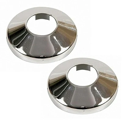 General description These chrome PVC radiator pipe cover collars are designed for quick and easy installation, allowing you to enhance the appearance of your radiator pipes without the need to drain down or disconnect them. The split-clip design ensures a hassle-free fitting process. Technical specifications Material: chrome PVC Outer hole size: 56mm Inner hole size: 28mm Quantity: 2 collars per set