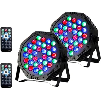 Durabe:Crafted with 36 LED beads, Our Disco Lights deliver exceptional brightness, higher stability and lower power consumption.The light cover is hexagon lens design with wider and more beautiful lighting effect.The cable is made of thicker copper which is more safe and longer life 7 Modes & Wireless Control:Enjoy versatile lighting with 7 modes: Static Color, Strobe, Fading, Automatic, Sound-Activated, Master-Slave, and DMX. Easily switch and control both party lights simultaneously using the included wireless remote Flexible Installation & Adjustable Angles:Designed with dual handles, these uplights can be effortlessly mounted on ceilings, walls, floors, or tables with angle adjustable DMX Available:Ready for advanced control, these Stage Lights support DMX connectivity. Simply connect via DMX cable (not included) to integrate into existing DMX systems, offering professional-grade lighting management for shows and events Widely Use:From DJ sets and Karaoke bars to weddings, clubs, theaters, and holiday celebrations (Christmas, etc.), these Disco Lights are the ultimate choice for dynamic lighting in parties, dances, and commercial venues like shopping malls, churches, and pubs