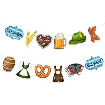 2Pcs Oktoberfest Banner, Garland, Bavarian Flag, Bunting Sign Backdrop Photo Booth Props for Beer Theme Party Supplies, Decorations