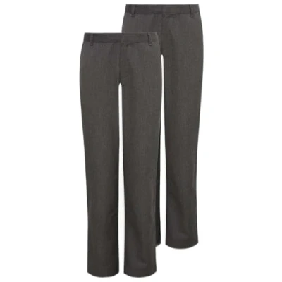 Ages 3, 4, 5, 6, 7, 8, 9, 11, 12, 13, 14, 15, 16, 17 and 18 Years These Twinpack trousers are treated with a Teflon fabric protector, which offers excellent protection against both water and oil-based spills. All school wear is machine washable. The waistband has a flat-back construction. 65% Polyester, 35% Viscose. Regular Fit Adjustable waistband Hook and eye fastening