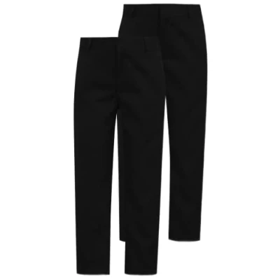 2PK Boys Adjustable Waist Regular Fit School Trousers Black Charcoal Grey Navy Blue 3 18 Years