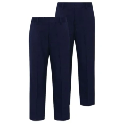 2PK Boys Elasticated Waist Regular Fit School Trousers Black Grey Navy Blue 3 18 Years