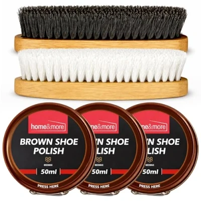 For Everyday Shoe Care – Keep footwear looking smart with this leather shoe care kit complete with shoe brush set and beeswax shoe polish. Use one brush to apply brown leather shoe polish and another to buff brown polish shoes to a clean, even shine. For Leather Shoes and Boots – Suitable for formal shoes, work shoes and boots, including use as a boot polish kit or army boot polish kit. This leather shoe polish helps refresh brown boot polish areas and tidy up scuffs on smooth leather items. Easy-Apply Beeswax Shoe Polish – The soft wax texture spreads smoothly as leather polish for shoes. Apply a small amount at a time, build in thin layers and buff for a neat finish when using as boot polish brown or everyday boot polish. Complete Shoe Polishing Kit – Includes 2 brushes and 3 tins of brown shoe polish for leather in one practical shoe polishing kit. Ideal as a shoe shine kit for men, boot cleaning kit or shoe cleaning kit for all shoes at home or on the go. Simple Shine and Regular Upkeep – Use with a boot polish cloth and store like a compact shoe shine box. Works as part of a leather boot care kit, leather care kit or leather cleaning kit, and can be alternated with clear boot polish when needed.