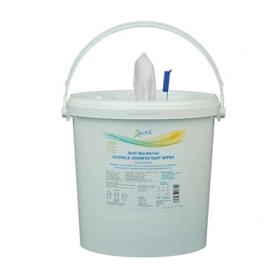Hard working surface sanitising wipes Kills 99% of viruses Suitable for disinfection of hard surfaces Effective against E coli, Salmonella, Listeria, P. Aeruginosa, MRSA, H1N1(Influenza A) HIV and Hepatitis B-C Tested to BS EN1650, EN1276 & BS EN14476 Keeps areas clean and germ free Can be used in healthcare settings and food industry environments Offer fast and efficient cleaning Supplied in a handy dispensing bucket Pack of 1,000 wipes