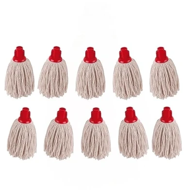12oz mop head only (handle available separately). Colour-coded for area-specific cleaning. PY yarn is suitable for smoother floor surfaces of wooden laminate or lino. Colour: Red. Pack of 10.