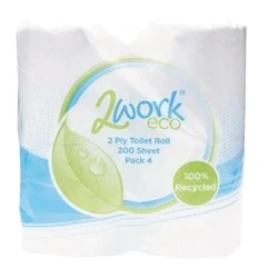 2Work Recycled 2 Ply Toilet Roll 200 Sheets (36 Pack) KF03809