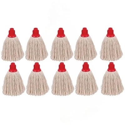 12oz mop head only Colour-coded red to differentiate between cleaning tasks and help prevent cross-contamination Rough twine yarn is suitable for a heavy tread rough surfaces Colour: Red Pack of 10 mop heads