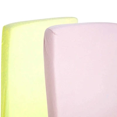 2X Cot Bed 100% Cotton Jersey Fitted Sheet 140 x 70 cm Lemon & Pink
