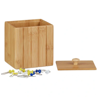 2X Relaxdays Storage Box with Lid, Small Wooden Organizer, Bamboo Stock Crate Container, HWD: 11.5 x 10 8 cm, Natural