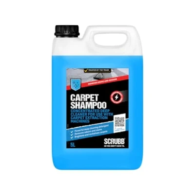 POWERFUL YET GENTLE CLEANSING: Formulated for deep cleaning of carpets, rugs, and upholstery using extraction machines. DEEP STAIN REMOVAL: Penetrates deep within the carpet pile to break down stains, grime, and dirt. ODOUR ELIMINATION: Deodorising ingredients target and neutralise the causes of bad odours, leaving carpets fresh. ALLERGEN REDUCTION: Regular use helps reduce allergens caused by pet hairs and dust mites. IDEAL FOR REGULAR MAINTENANCE: Keeps carpets, rugs, and upholstery looking cleaner for longer with consistent use. SCRUBB SO YOU DON'T HAVE TO: Building on years of expertise in chemical formulating, SCRUBB products have been developed for the most challenging of soils and evironments, enabling users to tackle the toughest cleaning tasks and achieve amazing results with ease.