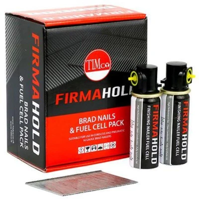 2x TIMCO Firmahold Collated Brad Nails & Fuel Cells 16 Gauge Straight Galvanised BG1632G Pack of 2000