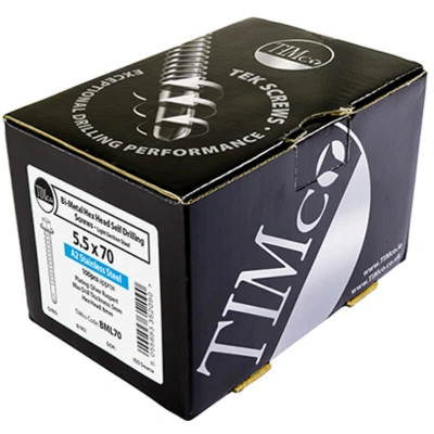 2x TIMCO Metal Construction Light Section Screws Hex Selfdrilling Bimetal Exterior Silver Organic BML25 Pack of 100
