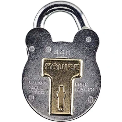 General description These Squire 440 Old English Padlocks are designed for durability and reliability, featuring a robust construction that ensures they will function effectively even in harsh environments. They are ideal for securing various locations such as farms, park gates, sheds, garages, and lock-ups. Technical specifications Body Width: 51mm Shackle Diameter: 8mm Shackle Height: 18mm Type: 440 Material: Forged steel shackles, cold rolled steel cases, brass bolts, levers, and keyhole covers Other information Keyed alike available to order CRIMESTOPPERS endorsed