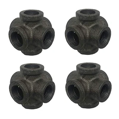 3/4 Inch 3,4,5,6 Way Industrial Cast Iron Pipe Fitting, Components For Building Tables, Chairs, Shelving, and Custom Furniture, Fits Standard Half Pipes Nipples, 4 Pack (6 Way)