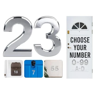 STRONG & WEATHERPROOF HOUSE NUMBERS – These durable 3D house numbers are made from high-quality ABS resin that’s waterproof, lightweight, and rustproof. Designed to last in all weather conditions. PICK YOUR PERFECT DOOR NUMBER – Choose the door number or house number you need from 0-99, plus letters A, B, C & D. Want more than one? Just add them to your basket one by one. BOLD SILVER CHROME DOOR NUMBERS – Featuring a sleek 3D chrome finish, these Silver door numbers shine beautifully in daylight and offer excellent visibility from a distance. SELF ADHESIVE DOOR NUMBERS – NO TOOLS NEEDED – These stick on door numbers come with strong adhesive backing. Just clean the surface, peel, and press – no screws or drilling required. SIZE & FIT – Each door number sticker measures 7.5cm high, 5cm wide, and 0.8cm deep – the perfect size for most doors and mailboxes.