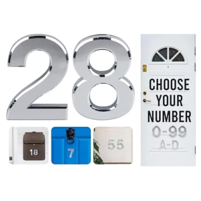 STRONG & WEATHERPROOF HOUSE NUMBERS – These durable 3D house numbers are made from high-quality ABS resin that’s waterproof, lightweight, and rustproof. Designed to last in all weather conditions. PICK YOUR PERFECT DOOR NUMBER – Choose the door number or house number you need from 0-99, plus letters A, B, C & D. Want more than one? Just add them to your basket one by one. BOLD SILVER CHROME DOOR NUMBERS – Featuring a sleek 3D chrome finish, these Silver door numbers shine beautifully in daylight and offer excellent visibility from a distance. SELF ADHESIVE DOOR NUMBERS – NO TOOLS NEEDED – These stick on door numbers come with strong adhesive backing. Just clean the surface, peel, and press – no screws or drilling required. SIZE & FIT – Each door number sticker measures 7.5cm high, 5cm wide, and 0.8cm deep – the perfect size for most doors and mailboxes.