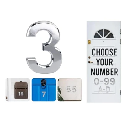 STRONG & WEATHERPROOF HOUSE NUMBERS – These durable 3D house numbers are made from high-quality ABS resin that’s waterproof, lightweight, and rustproof. Designed to last in all weather conditions. PICK YOUR PERFECT DOOR NUMBER – Choose the door number or house number you need from 0-99, plus letters A, B, C & D. Want more than one? Just add them to your basket one by one. BOLD SILVER CHROME DOOR NUMBERS – Featuring a sleek 3D chrome finish, these Silver door numbers shine beautifully in daylight and offer excellent visibility from a distance. SELF ADHESIVE DOOR NUMBERS – NO TOOLS NEEDED – These stick on door numbers come with strong adhesive backing. Just clean the surface, peel, and press – no screws or drilling required. SIZE & FIT – Each door number sticker measures 7.5cm high, 5cm wide, and 0.8cm deep – the perfect size for most doors and mailboxes.
