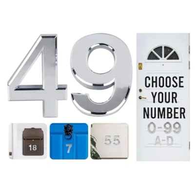 STRONG & WEATHERPROOF HOUSE NUMBERS – These durable 3D house numbers are made from high-quality ABS resin that’s waterproof, lightweight, and rustproof. Designed to last in all weather conditions. PICK YOUR PERFECT DOOR NUMBER – Choose the door number or house number you need from 0-99, plus letters A, B, C & D. Want more than one? Just add them to your basket one by one. BOLD SILVER CHROME DOOR NUMBERS – Featuring a sleek 3D chrome finish, these Silver door numbers shine beautifully in daylight and offer excellent visibility from a distance. SELF ADHESIVE DOOR NUMBERS – NO TOOLS NEEDED – These stick on door numbers come with strong adhesive backing. Just clean the surface, peel, and press – no screws or drilling required. SIZE & FIT – Each door number sticker measures 7.5cm high, 5cm wide, and 0.8cm deep – the perfect size for most doors and mailboxes.