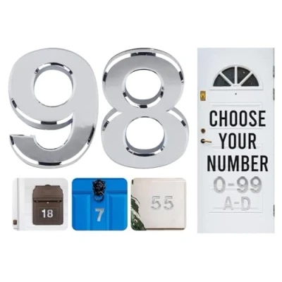STRONG & WEATHERPROOF HOUSE NUMBERS – These durable 3D house numbers are made from high-quality ABS resin that’s waterproof, lightweight, and rustproof. Designed to last in all weather conditions. PICK YOUR PERFECT DOOR NUMBER – Choose the door number or house number you need from 0-99, plus letters A, B, C & D. Want more than one? Just add them to your basket one by one. BOLD SILVER CHROME DOOR NUMBERS – Featuring a sleek 3D chrome finish, these Silver door numbers shine beautifully in daylight and offer excellent visibility from a distance. SELF ADHESIVE DOOR NUMBERS – NO TOOLS NEEDED – These stick on door numbers come with strong adhesive backing. Just clean the surface, peel, and press – no screws or drilling required. SIZE & FIT – Each door number sticker measures 7.5cm high, 5cm wide, and 0.8cm deep – the perfect size for most doors and mailboxes.