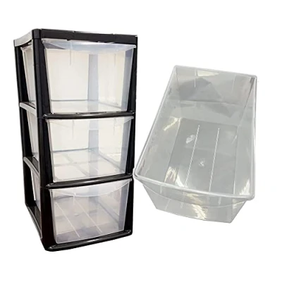 3 Clear Drawer Medium Black Modular Storage Tower Unit For Home Office Schools (2)