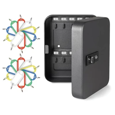 🔒 Secure Design: Features a 3-tumbler combination lock for enhanced security, eliminating the need for keys. 🏷️ Organized Storage: Comes with 20 key fobs and labels, ensuring easy identification and organization. 🪝 Ample Capacity: Equipped with 20 hooks to accommodate multiple keys, perfect for home or office needs. 🛠️ Wall Mountable: Designed for wall installation, offering convenient access and saving space. 🏠 Versatile Use: Ideal for homeowners, office managers, and landlords for efficient key management. 🏗️ Durable Build: Made from strong metal construction with a hinged door for long-lasting use and easy access., Manufacturer: Electrovision Ltd