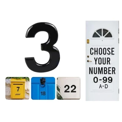 STRONG & WEATHERPROOF HOUSE NUMBERS – These durable 3D house numbers are made from high-quality ABS resin that’s waterproof, lightweight, and rustproof. Designed to last in all weather conditions. PICK YOUR PERFECT DOOR NUMBER – Choose the door number or house number you need from 0-99, plus letters A, B, C & D. Want more than one? Just add them to your basket one by one. BOLD BLACK CHROME DOOR NUMBERS – Featuring a sleek 3D black chrome finish, these black door numbers shine beautifully in daylight and offer excellent visibility from a distance. SELF ADHESIVE DOOR NUMBERS – NO TOOLS NEEDED – These stick on door numbers come with strong adhesive backing. Just clean the surface, peel, and press – no screws or drilling required. SIZE & FIT – Each door number sticker measures 7.5cm high, 5cm wide, and 0.8cm deep – the perfect size for most doors and mailboxes.