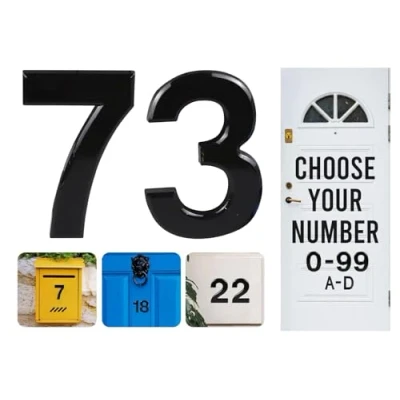 STRONG & WEATHERPROOF HOUSE NUMBERS – These durable 3D house numbers are made from high-quality ABS resin that’s waterproof, lightweight, and rustproof. Designed to last in all weather conditions. PICK YOUR PERFECT DOOR NUMBER – Choose the door number or house number you need from 0-99, plus letters A, B, C & D. Want more than one? Just add them to your basket one by one. BOLD BLACK CHROME DOOR NUMBERS – Featuring a sleek 3D black chrome finish, these black door numbers shine beautifully in daylight and offer excellent visibility from a distance. SELF ADHESIVE DOOR NUMBERS – NO TOOLS NEEDED – These stick on door numbers come with strong adhesive backing. Just clean the surface, peel, and press – no screws or drilling required. SIZE & FIT – Each door number sticker measures 7.5cm high, 5cm wide, and 0.8cm deep – the perfect size for most doors and mailboxes.