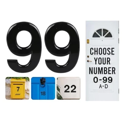 STRONG & WEATHERPROOF HOUSE NUMBERS – These durable 3D house numbers are made from high-quality ABS resin that’s waterproof, lightweight, and rustproof. Designed to last in all weather conditions. PICK YOUR PERFECT DOOR NUMBER – Choose the door number or house number you need from 0-99, plus letters A, B, C & D. Want more than one? Just add them to your basket one by one. BOLD BLACK CHROME DOOR NUMBERS – Featuring a sleek 3D black chrome finish, these black door numbers shine beautifully in daylight and offer excellent visibility from a distance. SELF ADHESIVE DOOR NUMBERS – NO TOOLS NEEDED – These stick on door numbers come with strong adhesive backing. Just clean the surface, peel, and press – no screws or drilling required. SIZE & FIT – Each door number sticker measures 7.5cm high, 5cm wide, and 0.8cm deep – the perfect size for most doors and mailboxes.