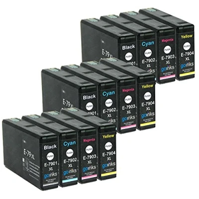 3 Go Inks Set of 4 Ink Cartridges to replace Epson T7906 (79XL Series) Compatible/non OEM for Workforce Pro Printers (12 Inks)