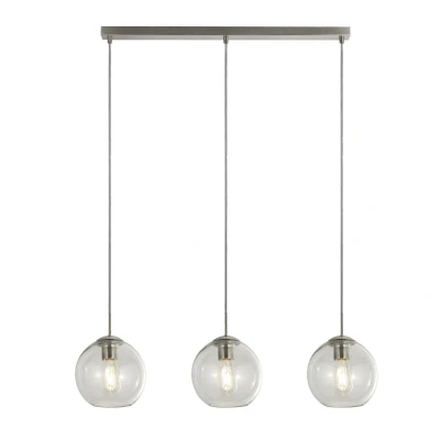 3 Light Pendant Bar Satin Silver, Glass Shade, E27
