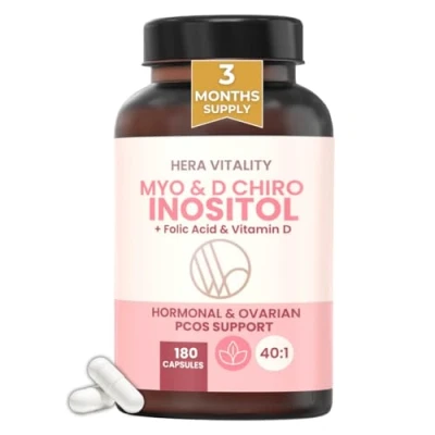 3 Month Supply Inositol Supplement for Women (180 Capsules) Myo & D Chiro 40:1 with Folic Acid Vitamin PCOS, Hormone Balance, Fertility Ovulation Support