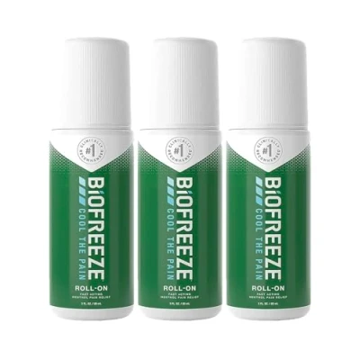 3 Pack Biofreeze Roll On 82G Bundle Fast Acting Muscle Joint Pain Relief with Cooling Menthol Soothe Sore Muscles Convenient Application