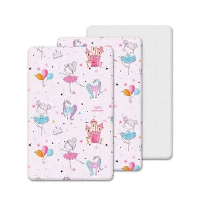 3 Pack Chicco Next To Me Compatible Crib Fitted Sheets 100% Cotton 2 Sheets, 1 Waterproof Mattress Protector Breathable, Soft & Antiallergic (Baby Pink Princess, 85 x 51 cm)