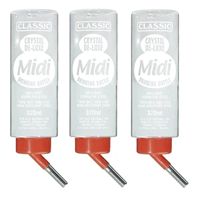 IN A VALUE 3 PACK FROM THE CLASSIC RANGE MADE FROM CLEAR PLASTIC TWIN BALL NON-LEAK GNAW RESISTANT SPOUT ANTI-RUST STAINLESS STEEL IDEAL FOR ALL SMALL ANIMALS, BEST SUITED FOR HAMSTERS, GERBILS, DEGUS & OTHER SIMILAR SIZED FURRIES