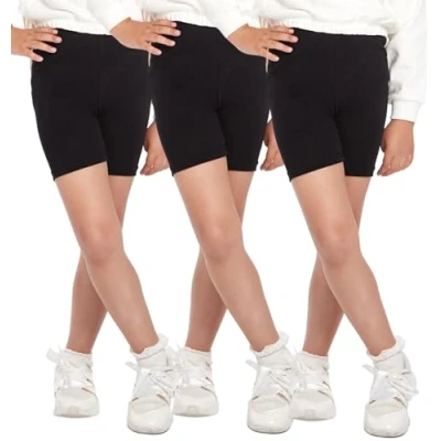3 PACK OF GIRLS COTTON SHORTS: Our girls cycling shorts are designed to accompany your child on endless adventures, whether outdoors, at home, or at school. The cotton short leggings for girls are breathable, stretchy, comfortable, lightweight, durable, super soft, and form-fitting. BASIC SAFETY GIRLS LEGGINGS: The girls school, sport and daily shorts fit perfectly and provide secure coverage while jumping or running at school during gymnastics or after school at home. A classic and basic form of clothing that creates a charming style in which the child feels comfortable. VERSATILE USAGE OPTIONS: 1/2 lenght kids leggings are excellent for school, leisure, dance, and sports. Our cotton leggings will accompany your children in every activity, providing the right comfort, freedom of movement, and incredible fun, as they are available in a range of colorful shades. Perfect as girls gymnastics shorts, girls sports shorts and as a casual short cotton leggings. PACK OF 3 AVAILABLE IN SIZES FROM 2 TO 13 YEARS: Our knee length leggings stand out not only due to their wide color palette but also thanks to a variety of sizes. The short cotton leggings are available for girls aged 2 to 13 years. You can choose from 6 classic colors in 3 packs and multicolors in 3 packs - check full range of available colors! HIGH-QUALITY COTTON BLEND: The short leggings for girls are made from high-quality material - 95% cotton and 5% elastane. These cotton shorts are not just an essential item in every child's wardrobe but also a fantastic gift idea for birthdays or other occasions. Allow your children to enjoy their joyful childhood in comfortable and functional clothing!