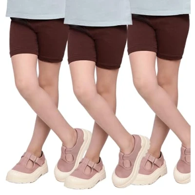 3 PACK OF GIRLS COTTON SHORTS: Our girls cycling shorts are designed to accompany your child on endless adventures, whether outdoors, at home, or at school. The cotton short leggings for girls are breathable, stretchy, comfortable, lightweight, durable, super soft, and form-fitting. BASIC SAFETY GIRLS LEGGINGS: The girls school, sport and daily shorts fit perfectly and provide secure coverage while jumping or running at school during gymnastics or after school at home. A classic and basic form of clothing that creates a charming style in which the child feels comfortable. VERSATILE USAGE OPTIONS: 1/2 lenght kids leggings are excellent for school, leisure, dance, and sports. Our cotton leggings will accompany your children in every activity, providing the right comfort, freedom of movement, and incredible fun, as they are available in a range of colorful shades. Perfect as girls gymnastics shorts, girls sports shorts and as a casual short cotton leggings. PACK OF 3 AVAILABLE IN SIZES FROM 2 TO 13 YEARS: Our knee length leggings stand out not only due to their wide color palette but also thanks to a variety of sizes. The short cotton leggings are available for girls aged 2 to 13 years. You can choose from 6 classic colors in 3 packs and multicolors in 3 packs - check full range of available colors! HIGH-QUALITY COTTON BLEND: The short leggings for girls are made from high-quality material - 95% cotton and 5% elastane. These cotton shorts are not just an essential item in every child's wardrobe but also a fantastic gift idea for birthdays or other occasions. Allow your children to enjoy their joyful childhood in comfortable and functional clothing!