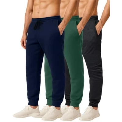 3 Pack: Mens Joggers Trousers Sweatpants Tracksuit Jogging Football Fleece Active Sports Athletic Training Track Gym Running Slim Fit Tapered Casual Jogger French Terry Pockets Bottoms,Set 1,S