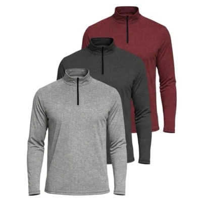 3 Pack: Mens Quarter 1/4 Zip Pullover Long Sleeve Jumper 1/2 Athletic Football Shirt Rugby Training Base Layer Gym Running Performance Golf Top Thermal Workout Sweatshirts Warm Jacket Set 3,XL