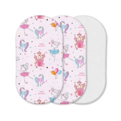 3 Pack Moses Basket Fitted Sheets 2 Pcs 100% Cotton Sheets, 1 Waterproof Mattress Protector Oeko tex 100 Breathable, Soft & Antiallergic (Baby Pink Princess, 75 x 30 cm)