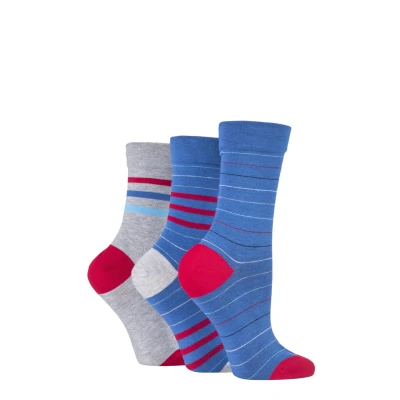 3 Pair Alpine Red Gentle Bamboo Socks with Smooth Toe Seams in Plains and Stripes Ladies 4 8 SOCKSHOP