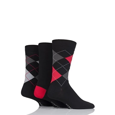 3 Pair Black 2 Classic Bamboo Argyle Socks Men's 7 11 Mens Glenmuir