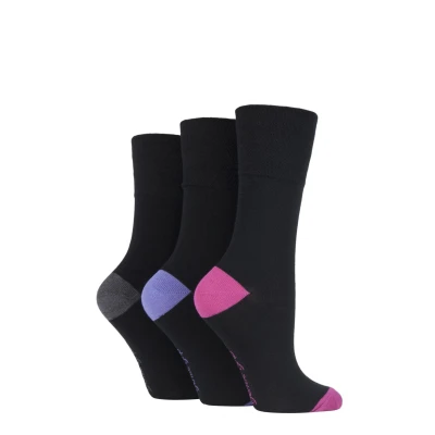 3 Pair Black / Charcoal Contrast Heel and Toe Socks Ladies 4 8 Gentle Grip