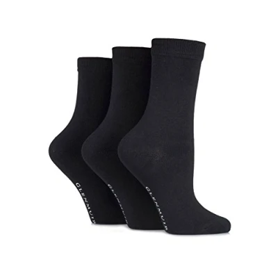 3 Pair Black Classic Plain Bamboo Socks Ladies 4 8 Glenmuir