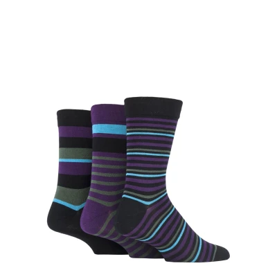 3 Pair Black Comfort Cuff Gentle Bamboo Striped and Plain Socks with Smooth Toe Seams Men's 12 14 Mens SOCKSHOP