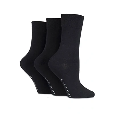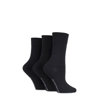 3 Pair Black Comfort Cuff Plain Bamboo Socks Ladies 4 8 Glenmuir