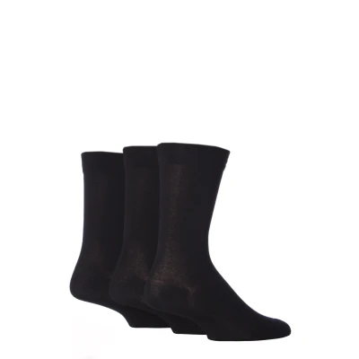 3 Pair Black Comfort Cuff Plain Gentle Bamboo Socks with Smooth Toe Seams Men's 7 11 Mens SOCKSHOP