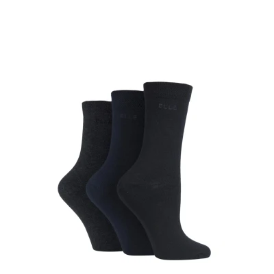 3 Pair Black / Navy Charcoal Plain Comfort Cuff Cotton Socks with Hand Linked Toes Ladies 4 8 Elle