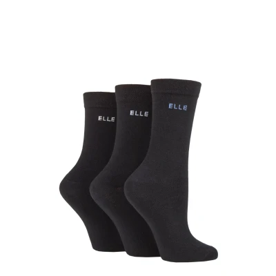 3 Pair Black Plain Comfort Cuff Cotton Socks with Hand Linked Toes Ladies 4 8 Elle