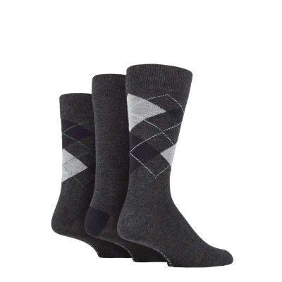 3 Pair Charcoal 2 Classic Bamboo Argyle Socks Men's 7 11 Mens Glenmuir